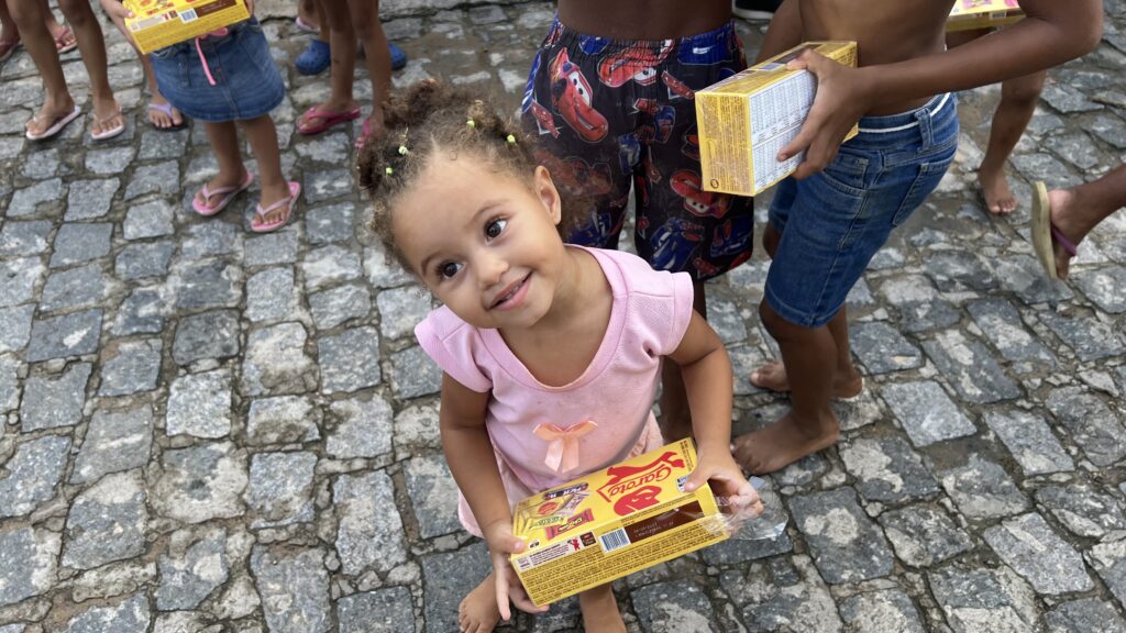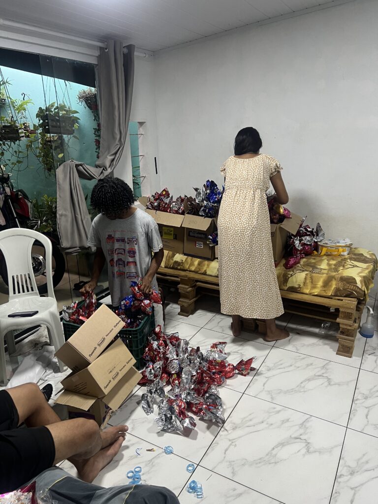 E pela tarde, distribuímos caixas de bombom nos bairros Nova Itabuna, Santo Antônio, condomínio Itabuna Park e algumas casas localizadas na BR sentido Itajuípe.