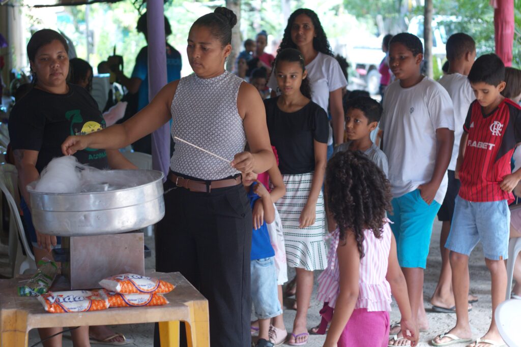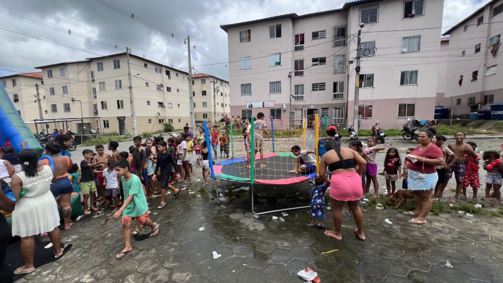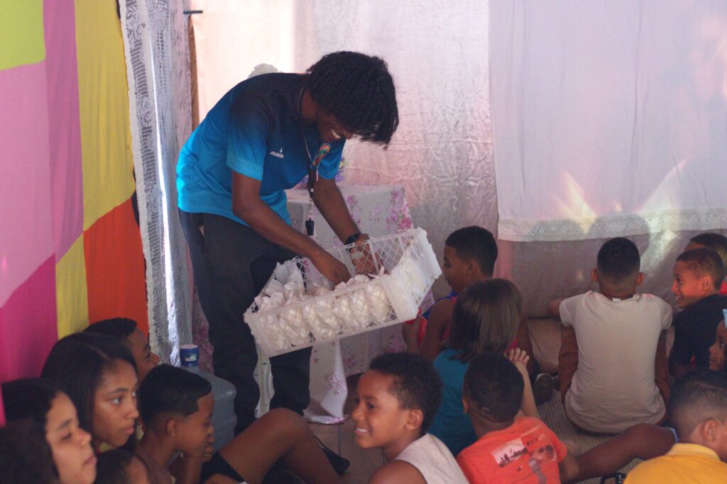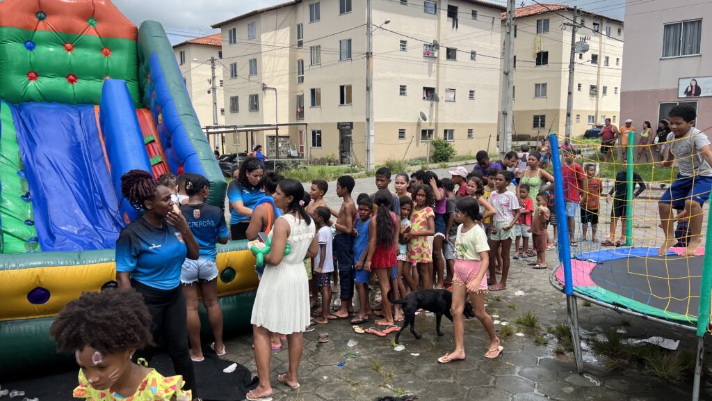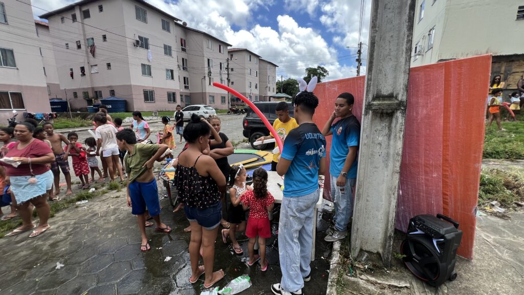 Nossa ação aconteceu em dois momentos: no sábado dia 4 de abril, realizamos a ação na Roça do povo, bairro rural da cidade de Itabuna. Neste dia, realizamos um cine, com exibição de um filme com o tema da páscoa, distribuição de lanches e de 100 ovos de páscoa, a ação aconteceu através de uma parceria dos nossos projetos com a Cufa Itabuna (@cufaitabunaa)