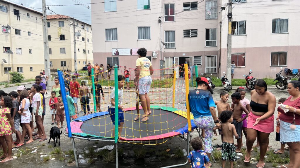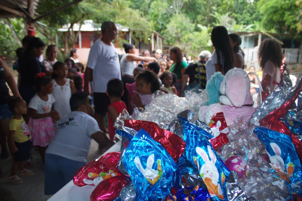 O segundo momento, aconteceu no domingo, dia 5, no condomínio Itapoan, no bairro Jorge Amado, em Itabuna, com início às 10h e finalizando ao meio dia. Foram atendidas em média 400 crianças, numa manhã com muita brincadeira, lanches e distribuição dos ovos de páscoa.
